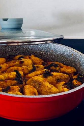 מכינים את הרוטב: מחממים בסיר את השמן ומוסיפים את האריסה, השום, הכמון, המלח והכורכום. מערבבים. מוסיפים את הלימון הכבוש ואת המנגולד ומערבבים. מוסיפים את המים, מביאים לרתיחה, מנמיכים את האש וממשיכים לבשל כמה דקות.